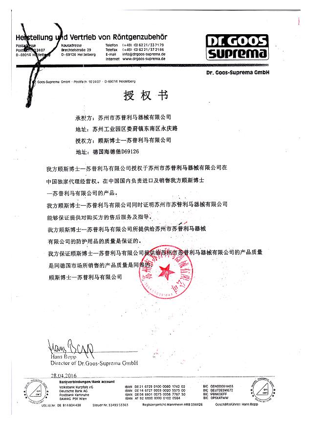 蘇州市蘇普利馬器械有限公司是專業(yè)從事醫(yī)用X射線防護(hù)系列用品、裝置、代理德國Dr.Goos-Suprema Gmbh.顧斯博士-蘇普利馬有限公司生產(chǎn)的原裝進(jìn)口鉛衣及醫(yī)用觀片燈的生產(chǎn)銷售企業(yè).生產(chǎn)的X射線防護(hù)圍裙均來自美國SHIELDING公司的最新型超薄型防護(hù)材料,,具有防護(hù)性能可靠、穿戴舒適、輕便柔軟、操作自如等諸多優(yōu)點(diǎn).產(chǎn)品均通過相關(guān)X射線檢測機(jī)構(gòu)的檢測,達(dá)到產(chǎn)品標(biāo)準(zhǔn)的要求.X射線醫(yī)用膠片觀察燈。是采用全LFD燈光技術(shù)。具有重量輕,光源均勻,亮度高,無頻閃,不變型,使用壽命長等特點(diǎn)。均取得了生產(chǎn)許可及醫(yī)查看更多>>